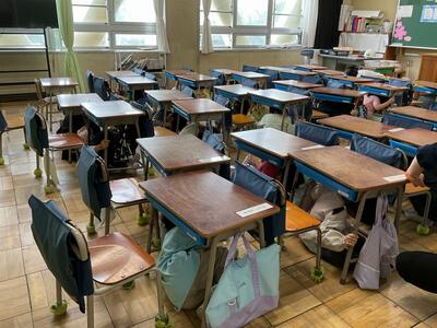 1年生は、今日遠足の予定でしたが、雨天予報のため延期となりました。午前中、楽しみにしていた遠足が雨の予報で延期になったのに、雨が降らないので「雨が降らないなら遠足に行きたかった」と残念そうな様子でした。