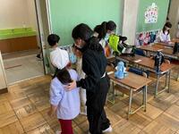 教室では6年生がお手伝いをしてくれていて、1年生と笑顔で接し、優しい口調でていねいに準備の仕方を教えていたり、かがんで目線を合わせて話をしたり、手をつないだり、肩にそっと手をあてて迷子にならないように、安心できるようにと気を配って移動したりと、1年生に寄り添った優しい行動がたくさん見られました。