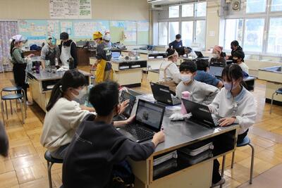 今日は、5年3組が調理実習をしていました。作ったのはお味噌汁です。私が見に行ったときには、すでに調理が終わり、食べ終わって、片付けやまとめをしているところでした。もう少し早く行きたかったです。
