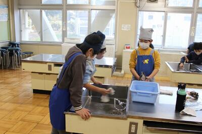 片付けをしているグループもあり、最後まで丁寧に流しを拭いていました。使った場所をきちんと掃除することも、大切な学びですね。
