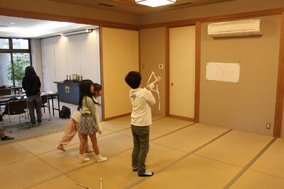 当日は、あやとりやカードゲーム、手作りの弓矢での的当て、シール帳、ゲーム機やタブレットでの遊びなど、それぞれがやりたいことを自由に楽しんでいました。