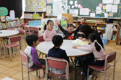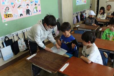 1年生の中には、登校時に涙を見せる子もいましたが、班長が昇降口まで手をつないで連れてきてくれ、その後は安心して学校生活を楽しむことができていました。