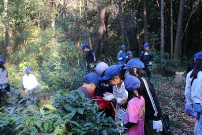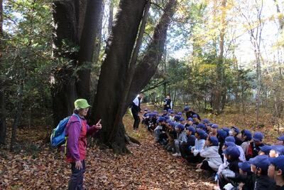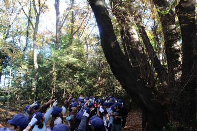 西富小学校のすぐ近くに、このように大切に手入れされている豊かな森があり、地域の自然に触れる貴重な体験となりました。