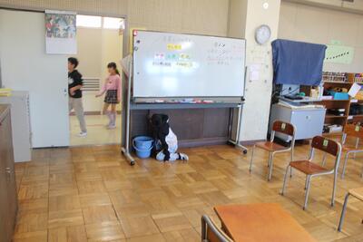 ルールは、動物のお面をかぶった6年生が校舎内や校庭に隠れており、見つける役の子どもたちはスマイル班で協力して探します。制限時間は20分間です。見つけた班は、隠れている6年生を放送室に連れて行き、「かくれんぼマスター認定証」を受け取ります。