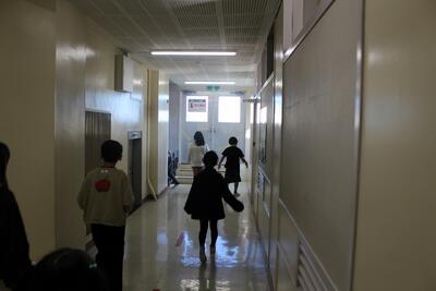 見つける子どもたちは、掃除用具入れや棚の中、机の下、段ボールの中など、あらゆる場所を必死に探していました。開始から最初の5分で半分ほどが見つかり、その後も1人また1人と次々に見つかっていきました。残り5分の時点では、あと1人だけが隠れている状態でした。最後の1人を見つけようと、どのスマイル班も一生懸命探しましたが、結局、最後まで見つけられませんでした。その最後の1人は、4階の一番東側にある使っていないワゴンの下に段ボールをかけて隠れていたそうです。